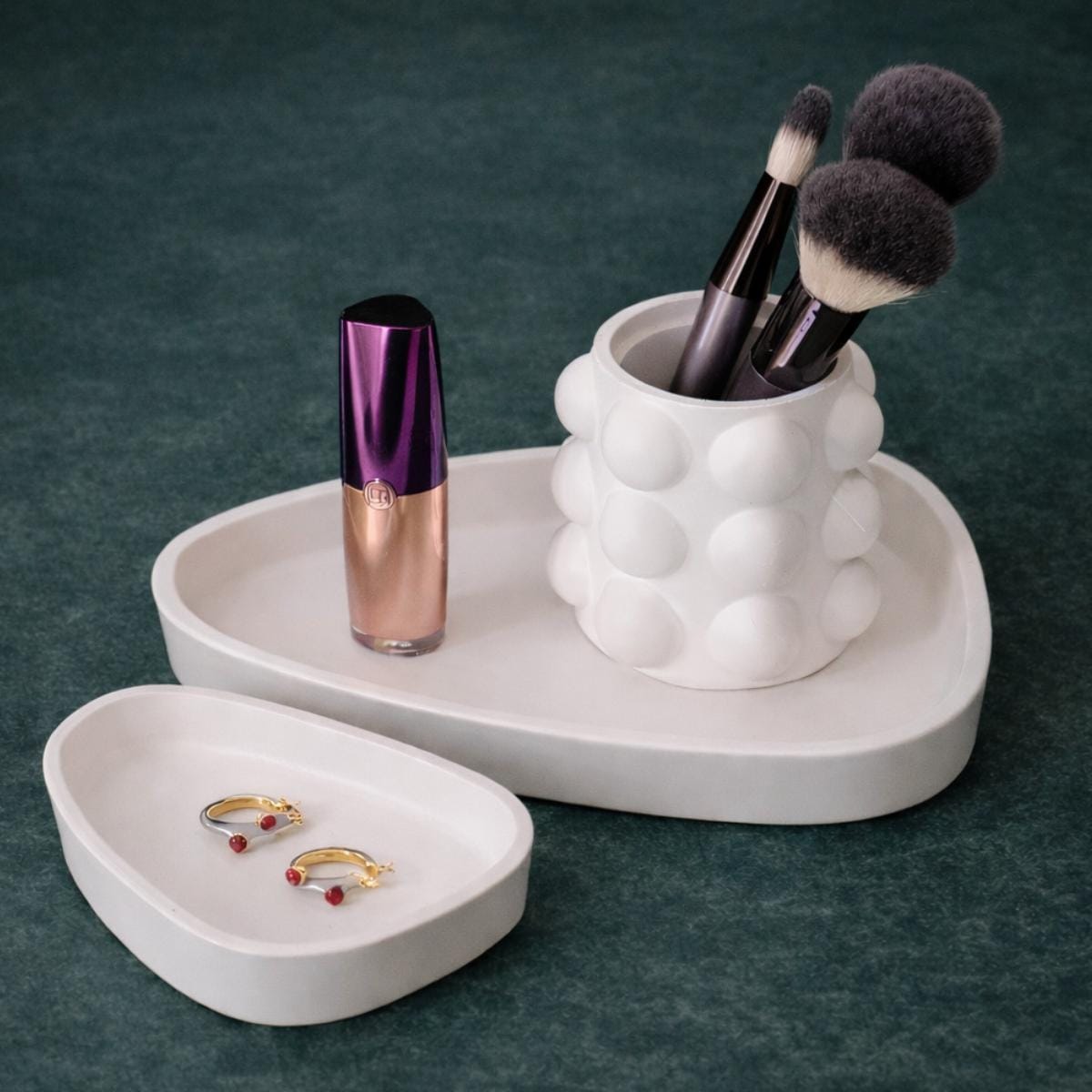 Klar, als Schmuckablage für Schmuck ist es perfekt: Ringe, Ohrringe, Ketten oder Armbänder sind schnell griffbereit. Genauso gut eignet sich das Tablett aber für viele weitere Dinge, zum Beispiel für Make-up Basics, Parfum Proben, Haarklammern, Schlüssel, Münzen, AirPods, USB Sticks oder kleine Deko wie Trockenblumen und Teelichter. Genau diese Vielseitigkeit macht es so praktisch.