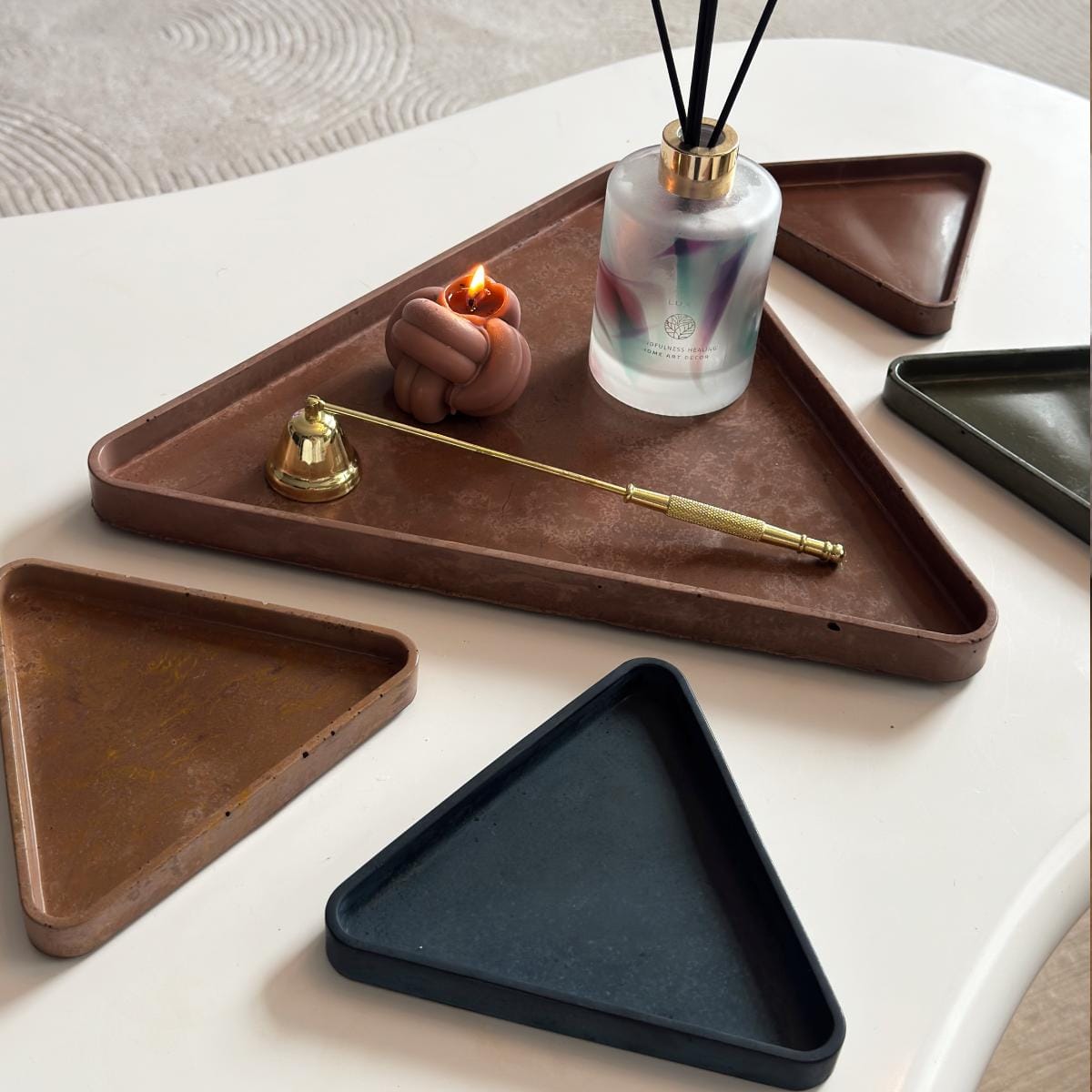 - 5-teiliges Dekotablett Set in dreieckiger Form für moderne Deko