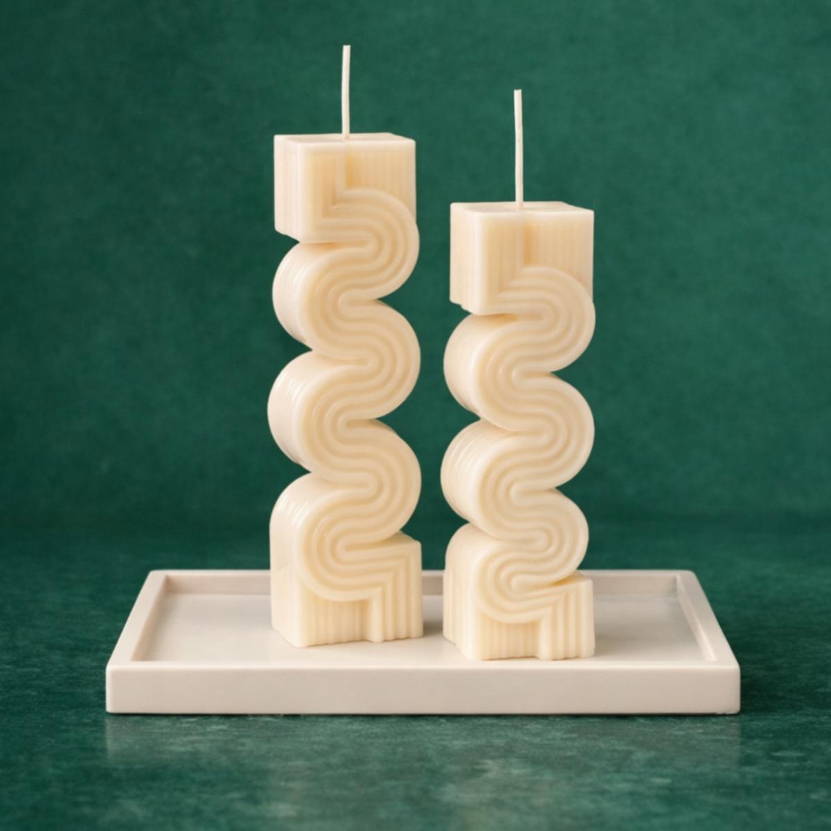 - Keramik-Tablett plus 2 Designkerzen als stimmiges Set