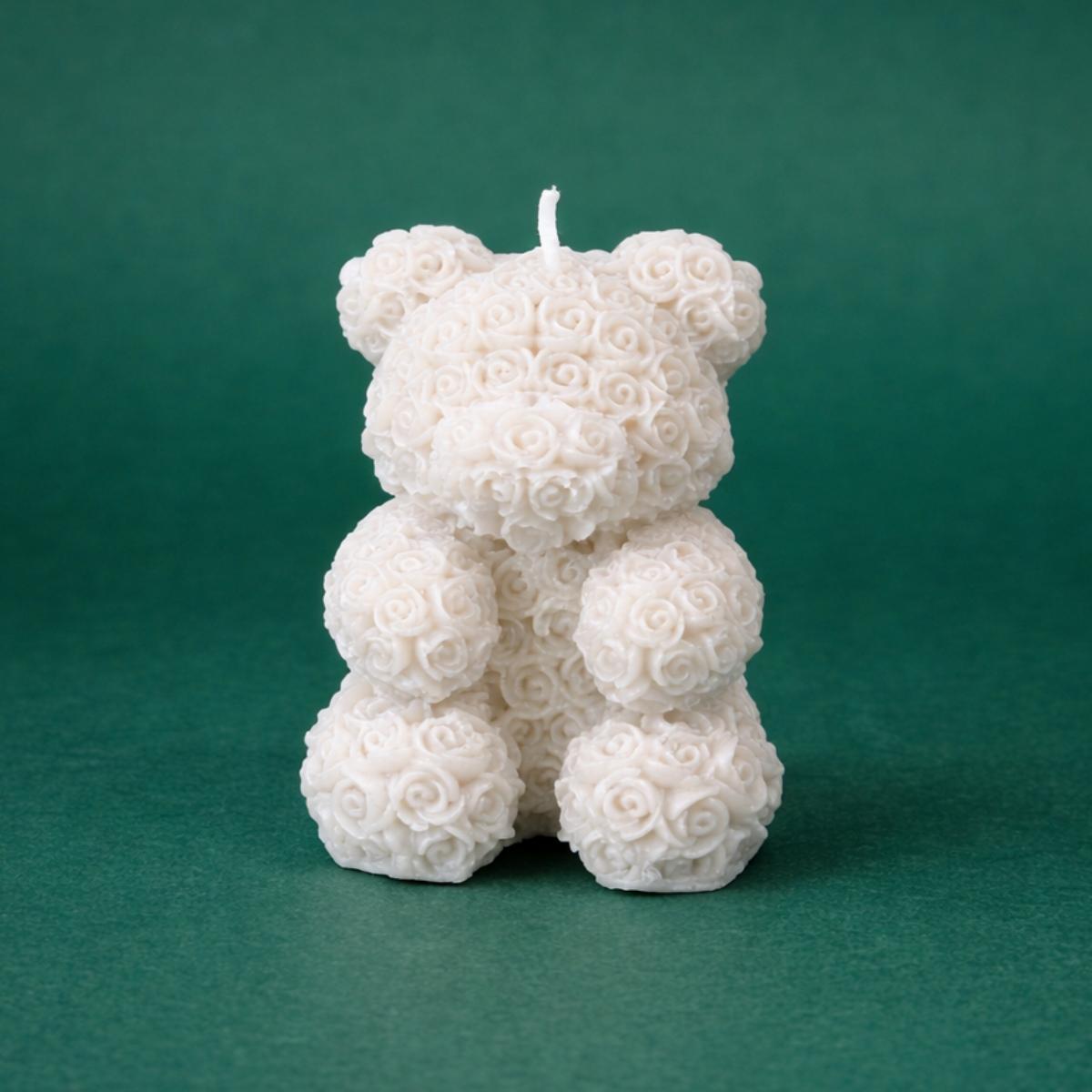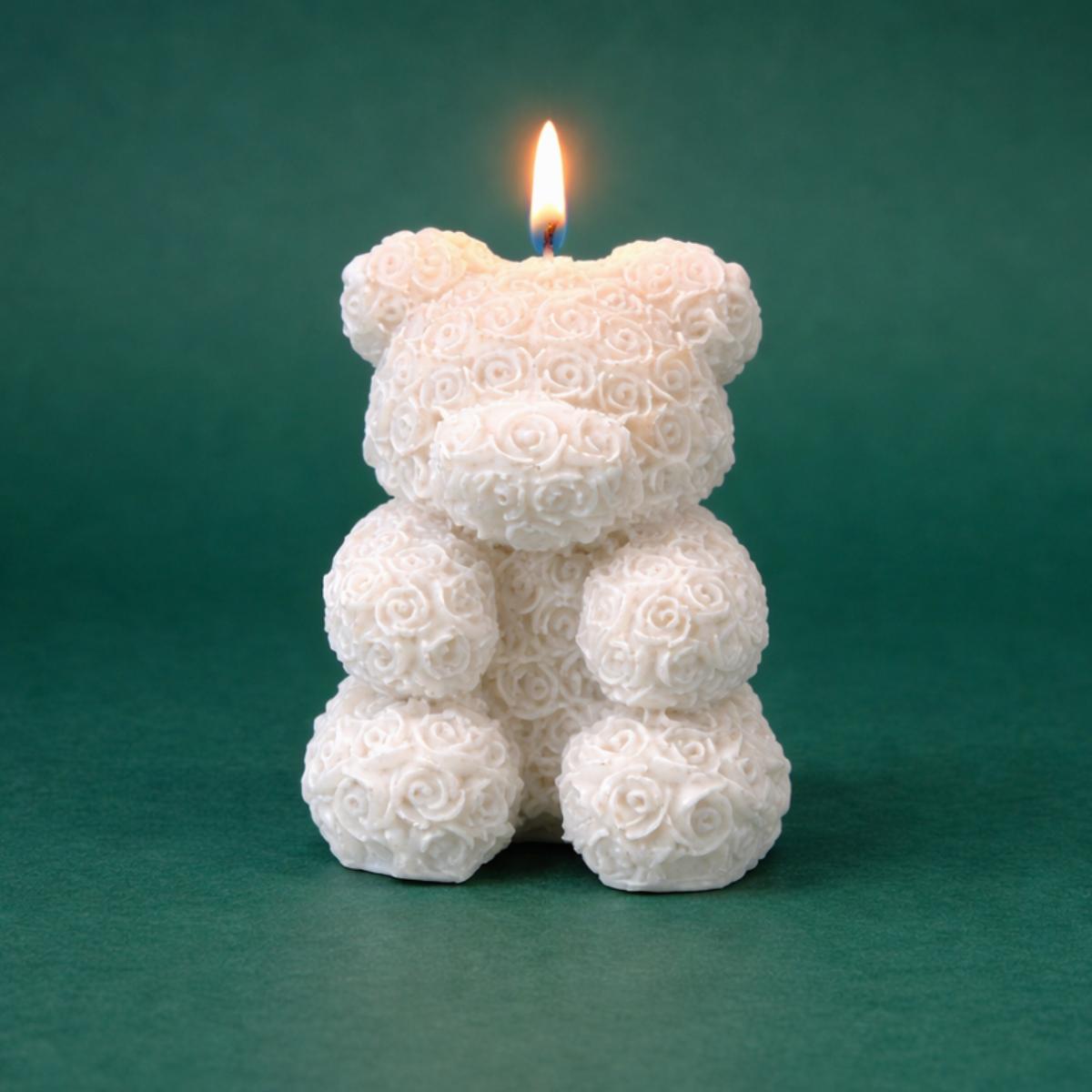 - Rosen Teddybär Kerze: aus vielen kleinen Rosen geformt