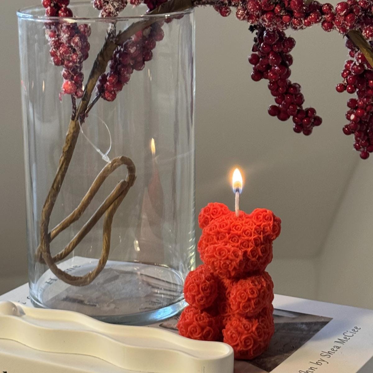 Für einen besonders schönen Look: Stell die Rosen Teddybär Kerze auf eine schlichte Keramikschale oder ein kleines Tablett und kombiniere sie mit einem dezenten Wohnaccessoire. So wirkt deine Kerzen Deko sofort stimmig, ohne überladen zu sein.